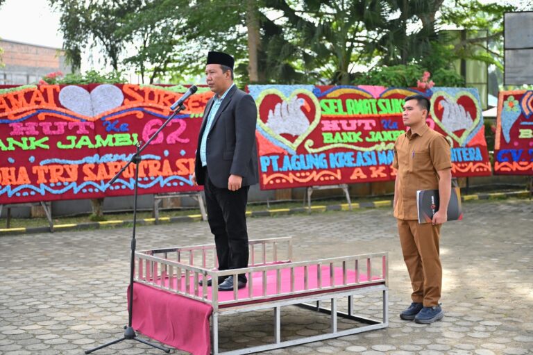 RelasiDaerah.com, TANJABTIMUR – Bupati Tanjung Jabung Timur, H. Romi Hariyanto, SE jadi Inspektur upacara dalam rangka memperingati Hari Ulang Tahun (HUT) Bank Jambi yang ke-62, Bank Jambi Cabang Tanjab Timur menggelar upacara peringatan yang berlangsung dengan khidmat di halaman kantor cabang tersebut, Bupati Tanjab Timur bertindak sebagai inspektur upacara didampingi oleh Direktur Bank Jambi cabang Tanjab Timur dan para kepala OPD dan tamu undangan lainnya, Rabu (8/1/25)
