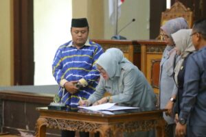 RelasiDaerah.com, TANJABTIMUR – Dewan Perwakilan Rakyat Daerah (DPRD) Kabupaten Tanjung Jabung Timur menggelar Rapat Paripurna masa persidangan II Tahun 2024-2025 dengan agenda pengumuman usul pemberhentian Bupati dan Wakil Bupati Tanjung Jabung Timur hasil pemilihan pilkada serentak tahun 2024.