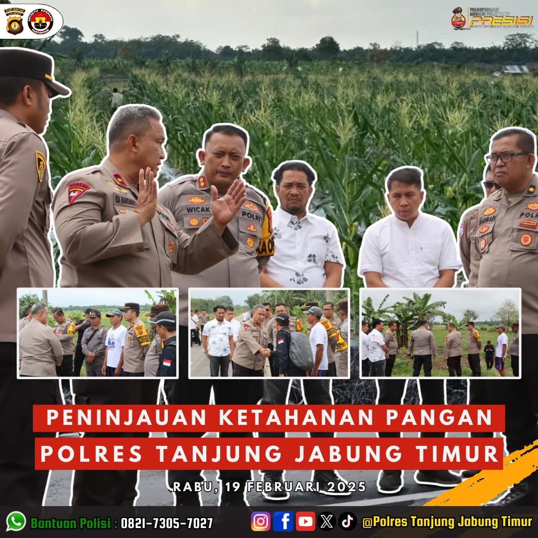 Dalam kunjungannya ke lahan pertanian ketahanan pangan jagung di Kota Terpadu Mandiri (KTM) Kota Baru, Waka Polda Jambi, Brigjen Pol Edi Mardianto, menyampaikan beberapa arahan penting: