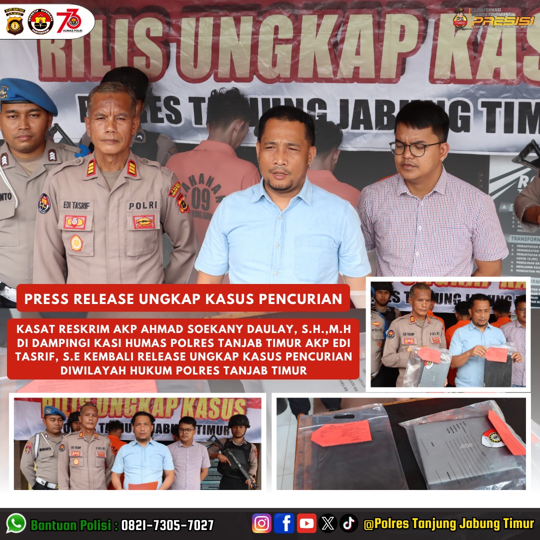 Kasat Reskrim Polres Tanjab Timur, AKP Ahmad Soekany Daulay, S.H., M.H., menyampaikan bahwa keberhasilan pengungkapan ini merupakan hasil kerja keras tim dalam melakukan penyelidikan dan pengumpulan bukti. “Kami akan terus berupaya menindak tegas pelaku kejahatan demi menjaga keamanan dan ketertiban di wilayah hukum Polres Tanjab Timur,” tegasnya.