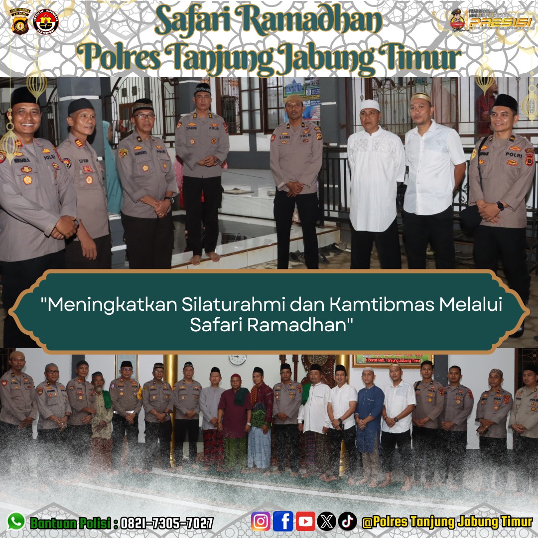 Kegiatan Safari Ramadhan ini akan terus berlanjut di berbagai masjid lainnya di wilayah Tanjab Timur sebagai wujud kepedulian Polri terhadap masyarakat, sekaligus memperkuat sinergi dalam menciptakan lingkungan yang aman dan damai selama bulan suci Ramadhan.(red)