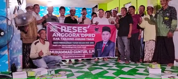 RelasiDaerah.com, TANJABTIMUR – Wakil Ketua Komisi 1 Dewan Perwakilan Rakyat Daerah (DPRD) Kabupaten Tanjung Jabung Timur dari Fraksi PDIP, Muhammad Guntur S.Pi, Gelar Reses di Kelurahan Tanjung Solok Kecamatan Kuala Jambi,Minggu Malam, 05/10/2025.