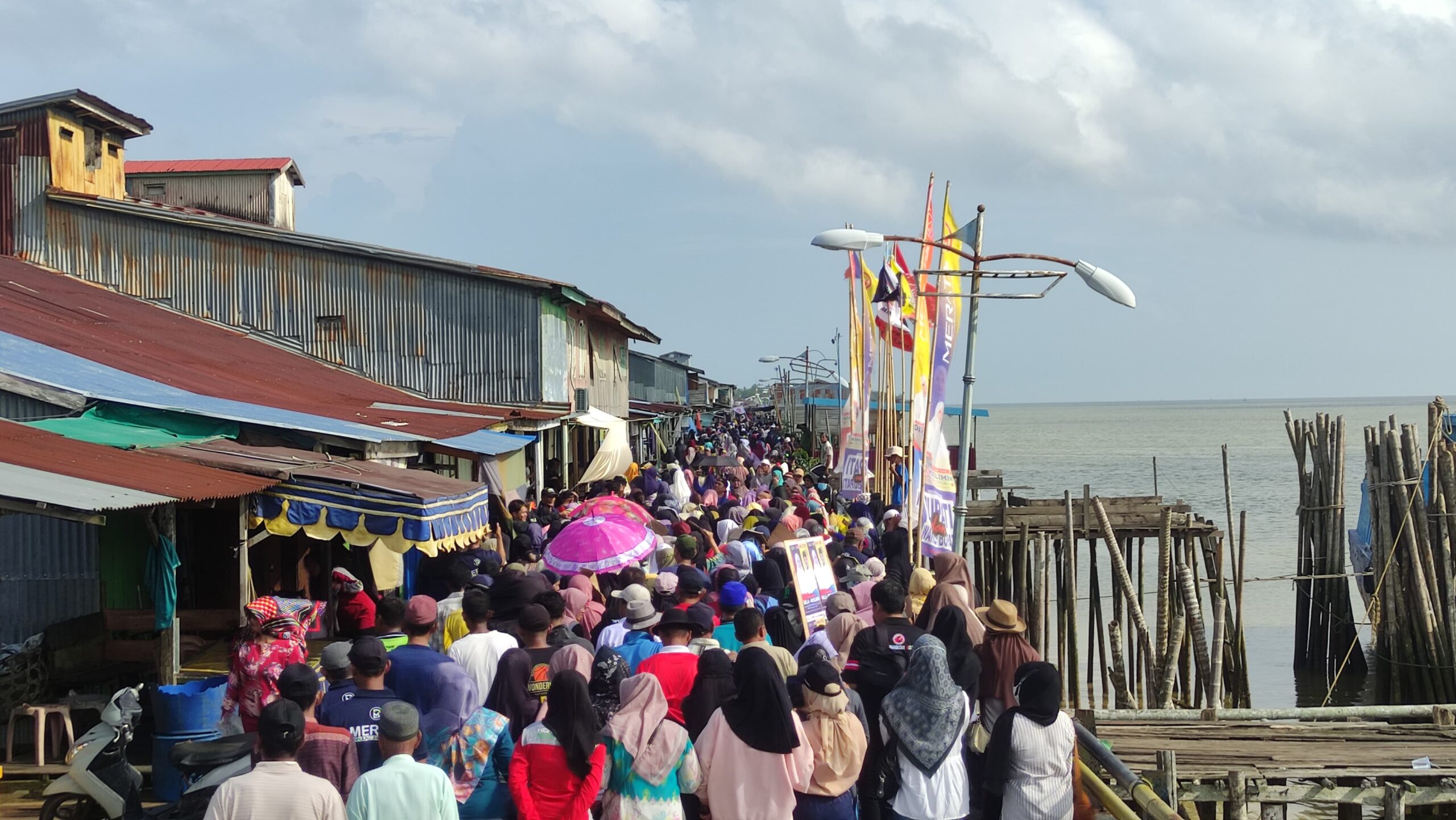 Berkumpul bersama ribuan masyarakat sejak pukul 07:30 WIB, pasangan Dillah-Muslimin berjalan penuh suka ria dari rute LLASDP Kuala Jambi menuju titik finish Rest Area Tanjung Solok. Tampak masyarakat sangat antusias dengan memadati hampir seluruh sisi jalan. Tumpah ruah masyarakat seakan tak terbendung saat musik penyemangat di nyalakan, dan di iringi dengan teriakan masa “Merata 2024 Menang”.