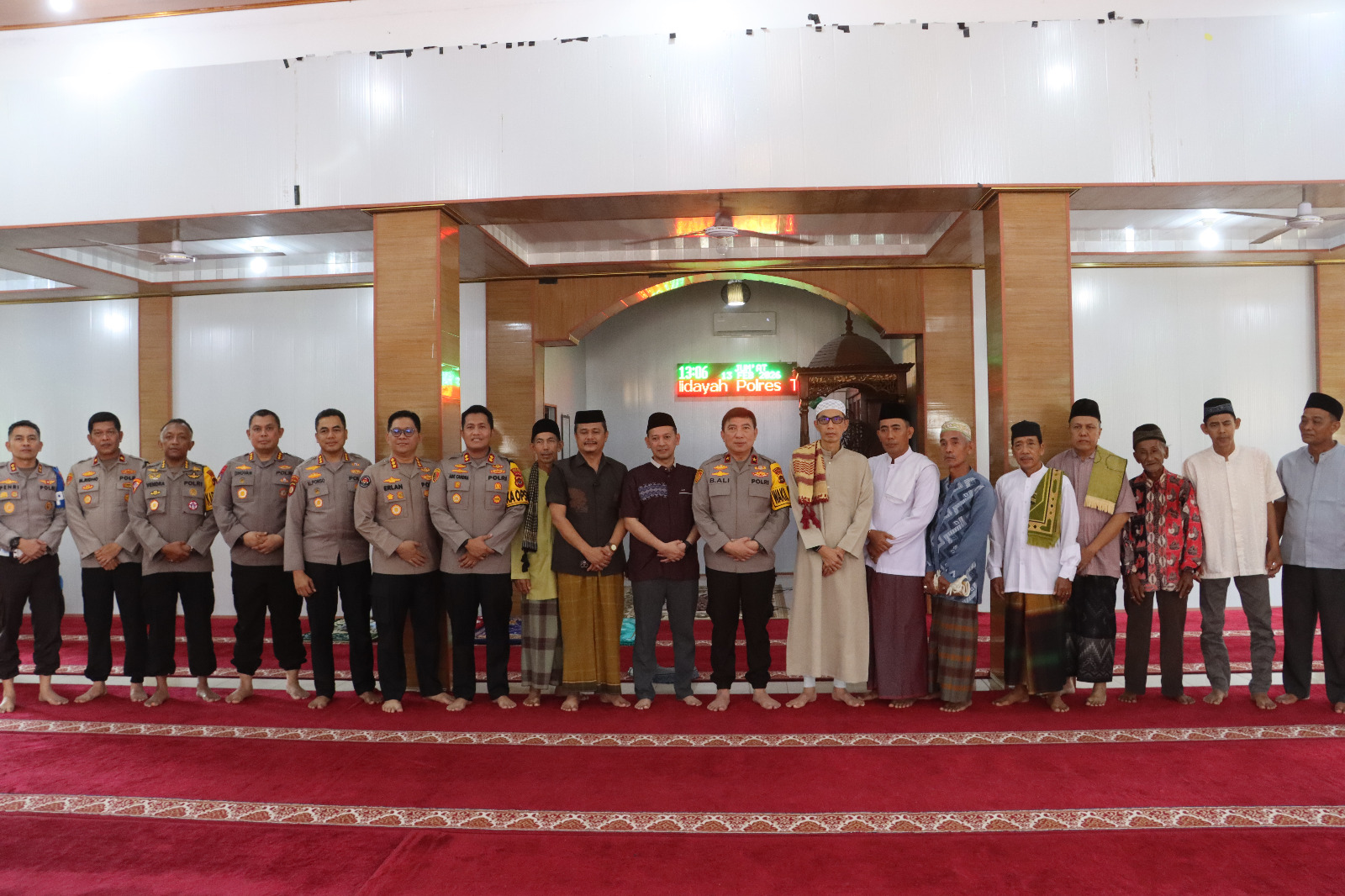 Kegiatan yang digelar di Aula Parama Satwika tersebut diawali dengan pelaksanaan Sholat Jumat di Masjid Nurul Hidayah Polres Tanjung Jabung Timur bersama personel dan masyarakat sekitar. Usai ibadah, Wakapolda Jambi melaksanakan tatap muka dan silaturahmi bersama tokoh agama (Toga) dan tokoh masyarakat (Tomas) sebagai bentuk silaturahmi serta penguatan sinergitas Polri dengan elemen masyarakat di wilayah hukum Tanjab Timur.