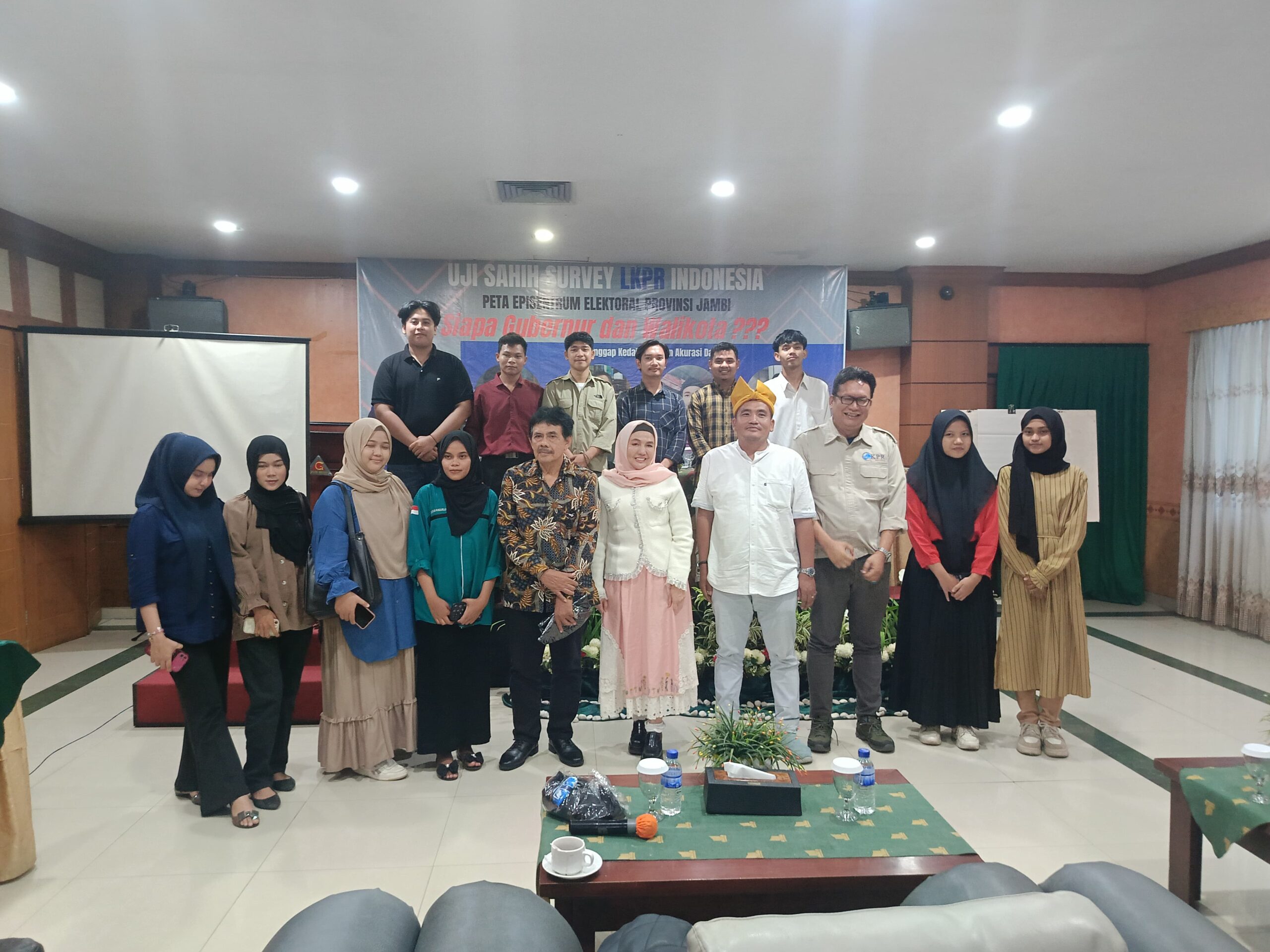Kegiatan yang bertajuk Peta Episentrum Elektoral Pilgub dan Pilwako Jambi ini dilaksanakan di Grand Hotel dihadiri perwakilan media dan mahasiswa dalam format uji Sahih bedah kedalaman dan akurasi data survei.